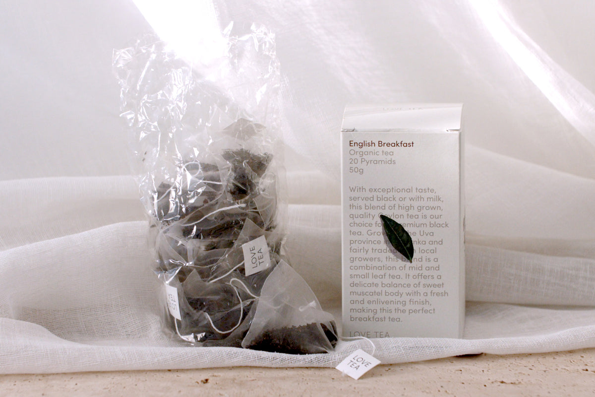 If you purchase Love Tea you will notice a plastic looking pouch inside the box. This pouch resembles plastic but it’s actually a biodegradable plant-based cellophane made from a product called NatureFlex. These bags are definitely not poly-propylene based bags like most plastic pouches, which means you can easily home compost our cellos and they will break down naturally over a very short time.