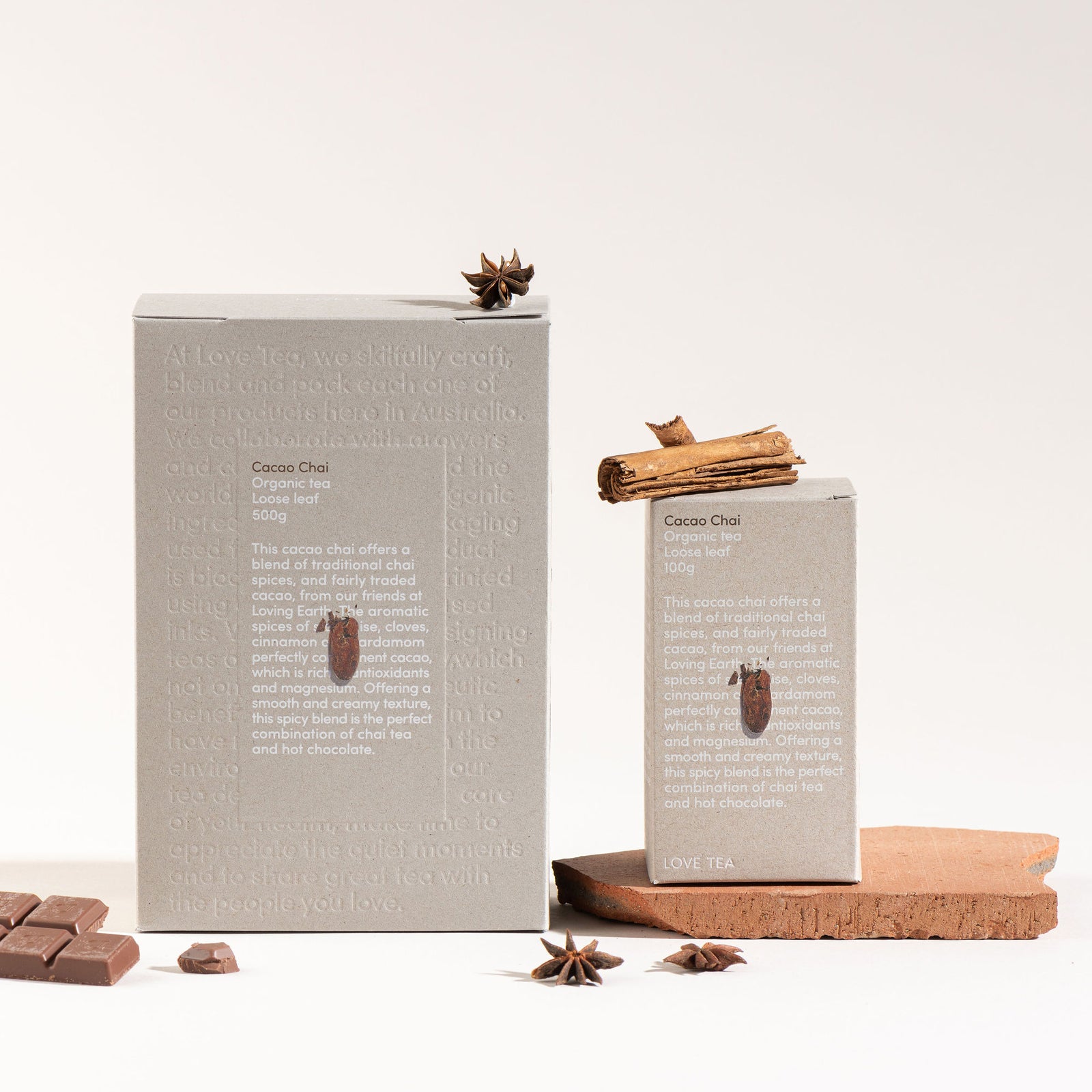 This cacao chai offers a blend of traditional chai spices, and organic cacao. The aromatic spices of star anise, cloves, cinnamon and cardamom perfectly compliment cacao, which is rich in antioxidants and magnesium. Offering a smooth and creamy texture, this spicy blend is the perfect combination of chai tea and hot chocolate.
