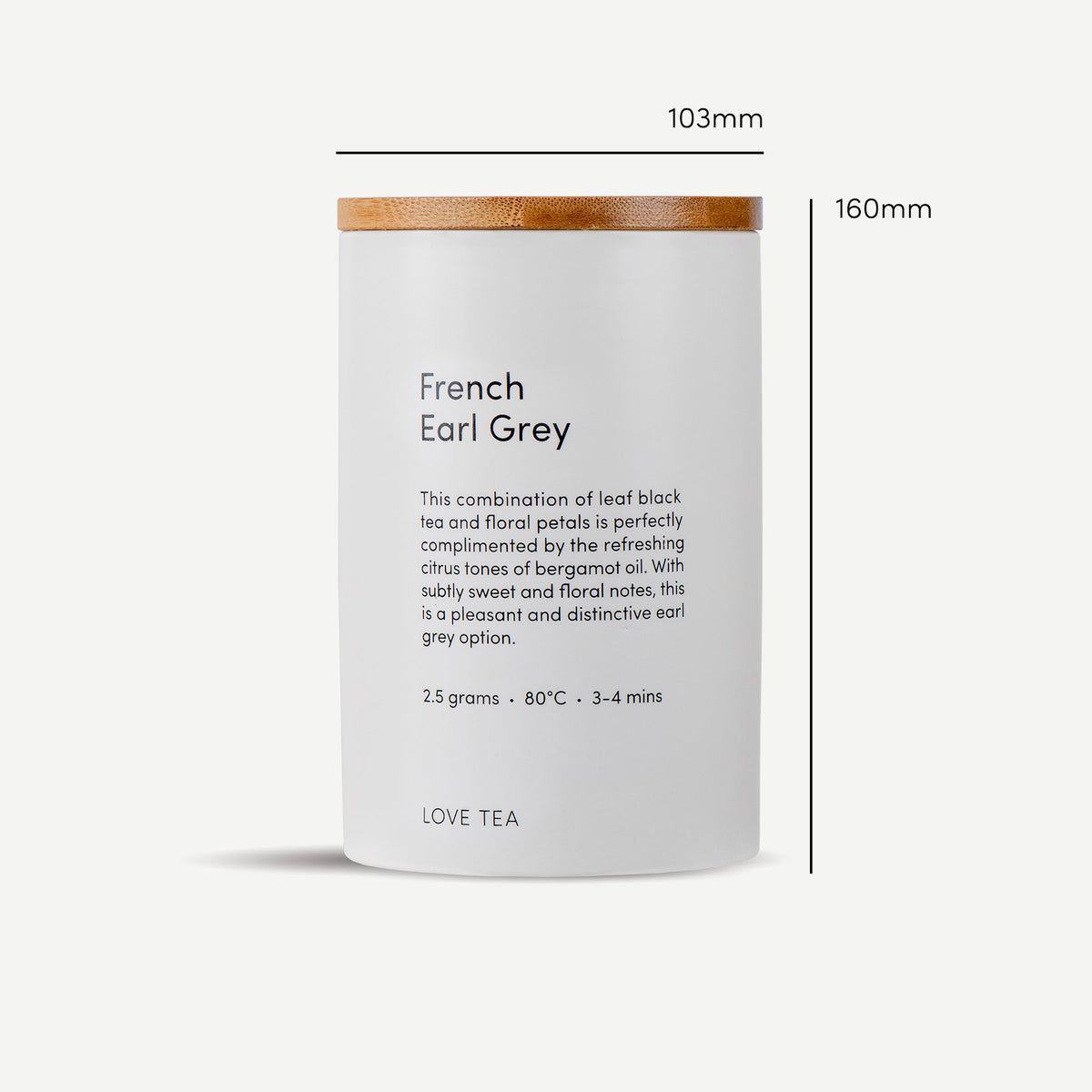 This canister is supplied with your choice of 100g of loose leaf tea or 20 pyramid tea bags.