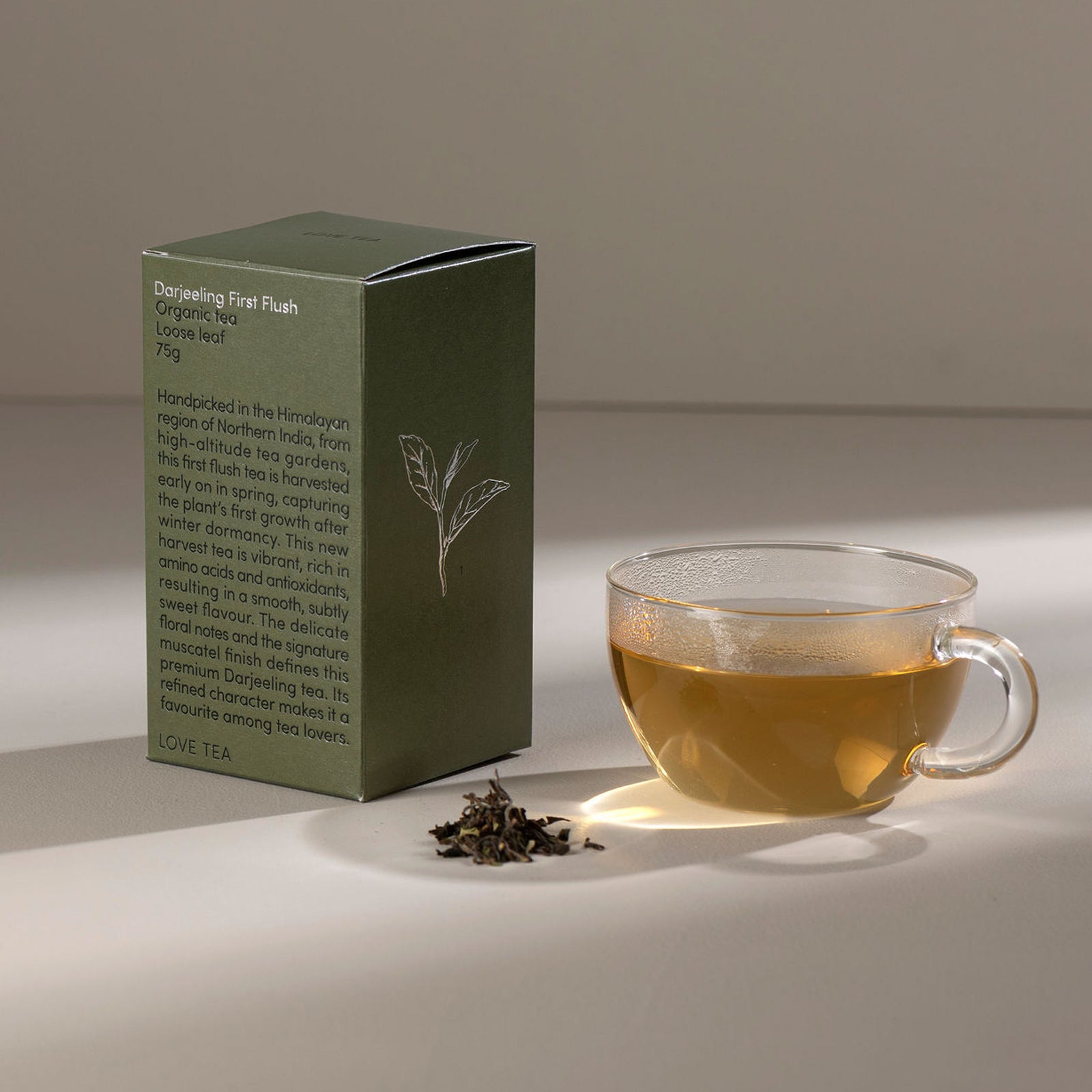 Handpicked in the Himalayan region of Northern India, from high-altitude tea gardens, this first flush tea is harvested early on in spring, capturing the plant’s first growth after winter dormancy. This new harvest tea is vibrant, rich in amino acids and antioxidants, resulting in a smooth, subtly sweet flavour. The delicate floral notes and the signature muscatel finish defines this premium Darjeeling tea. Its refined character makes it a favourite among tea lovers.