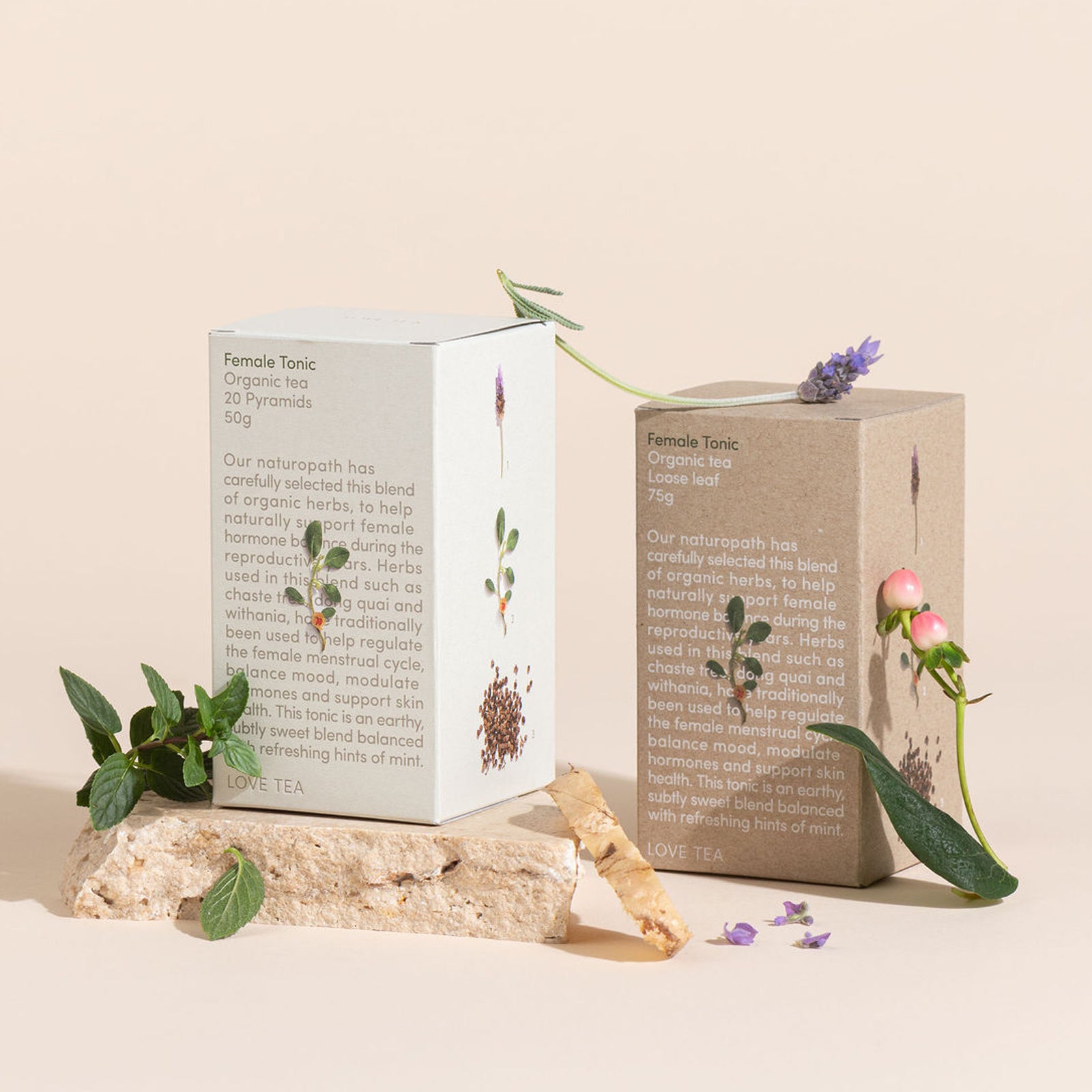 Our naturopath has carefully formulated this blend to naturally support female hormone balance through the reproductive years. Herbs used in this blend such as chaste tree, dong quai and withania, have traditionally been used to help regulate the female menstrual cycle, support skin health, balance mood, and modulate hormones. This tonic is an earthy and subtly sweet blend, balanced with refreshing hints of mint. This blend is caffeine free. This blend is not recommended for people with hypertension, those who are pregnant or breastfeeding or those taking the oral contraceptive pill.