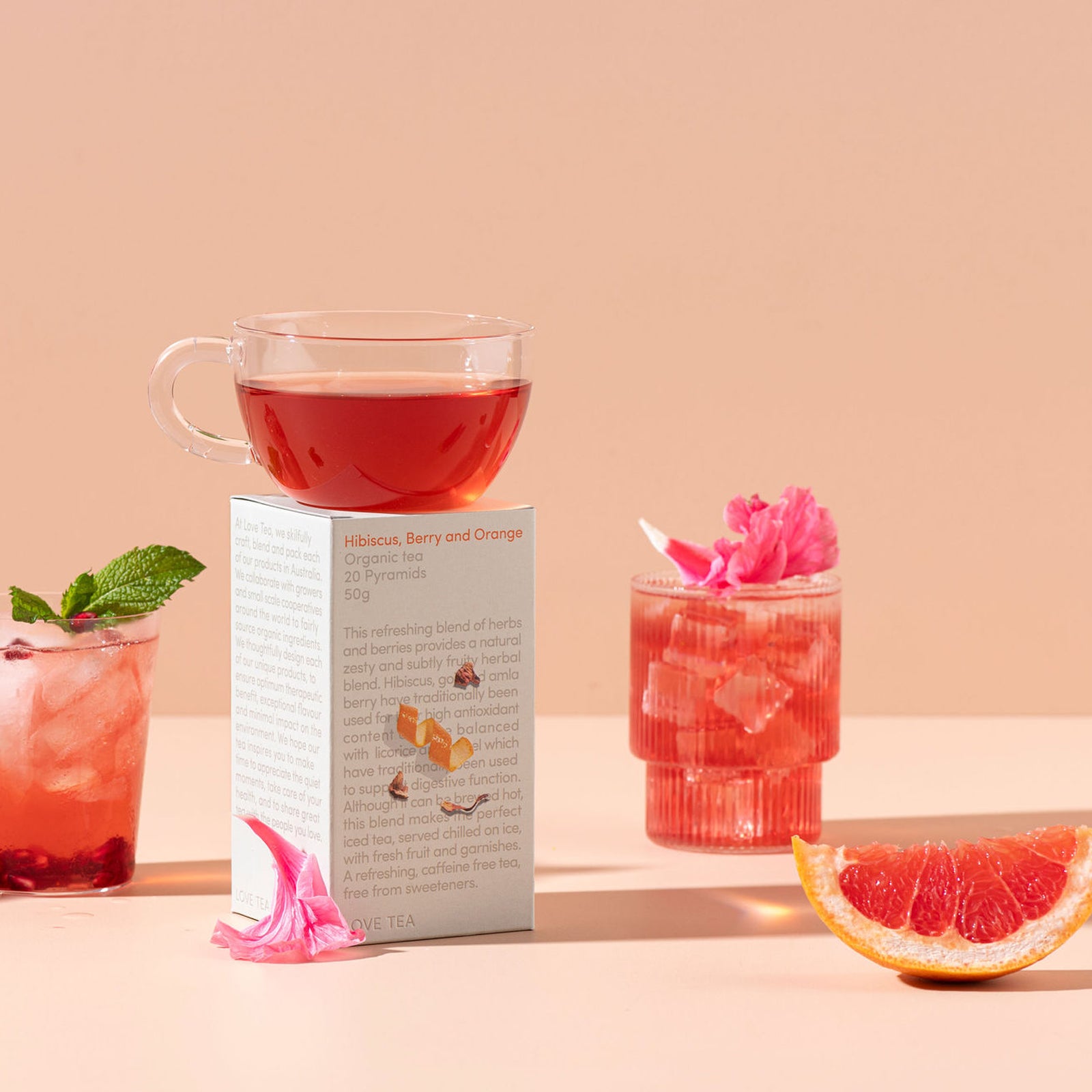 This refreshing blend of herbs and berries provides a natural zesty and subtly fruity herbal blend. Hibiscus, goji and amla berry have traditionally been used for their high antioxidant content and are balanced with licorice and fennel which have traditionally been used to support digestive function. Although it can be brewed hot, this blend makes the perfect iced tea, served chilled on ice, with fresh fruit and garnishes. A refreshing, caffeine free tea, free from sweeteners. This blend contains licorice and caution is recommended for people who are breastfeeding, pregnant or have hypertension.
