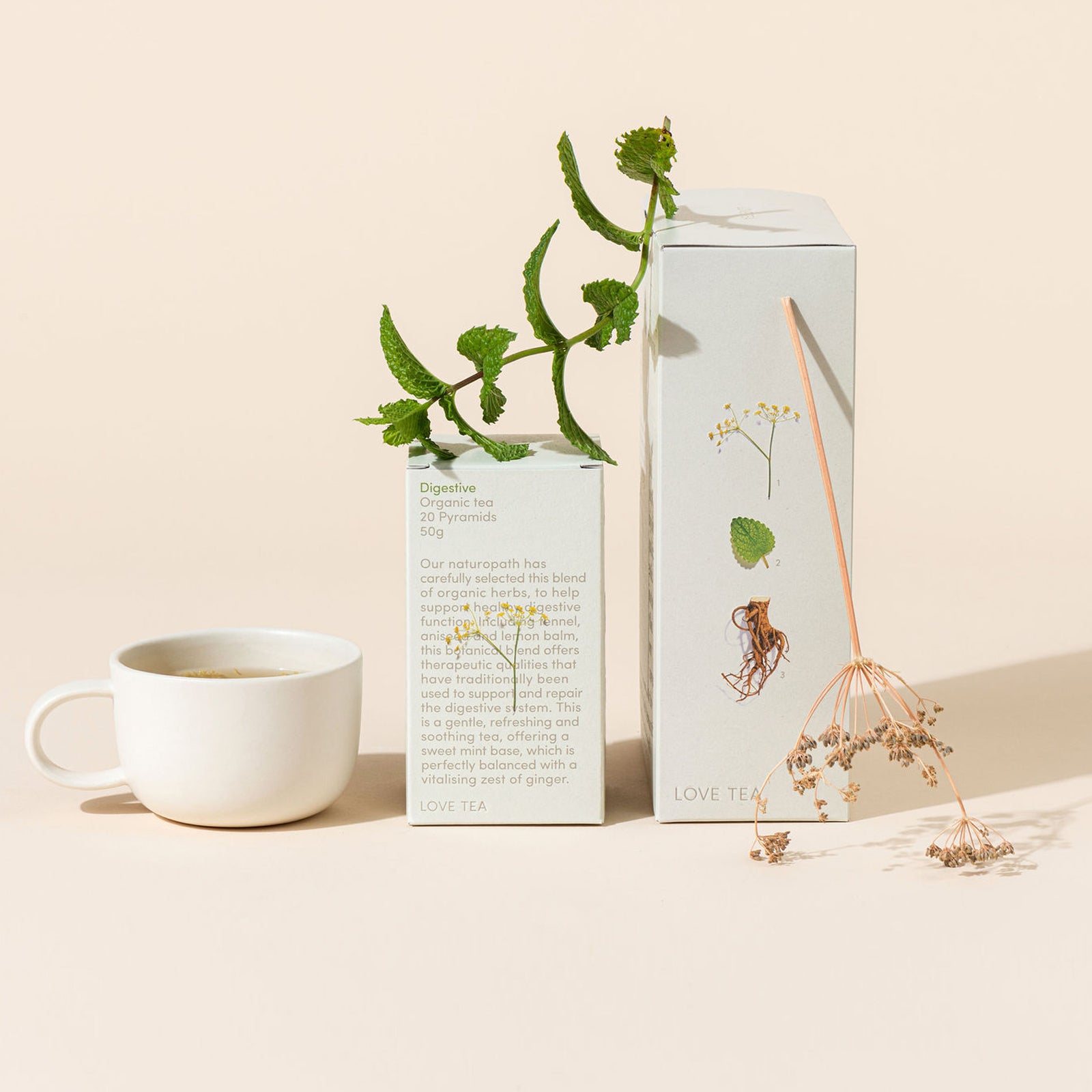Our naturopath has carefully selected this blend of organic herbs, to help support healthy digestive function. Including fennel, aniseed and lemon balm, this botanical blend offers therapeutic qualities that have traditionally been used to support and repair the digestive system. This is a gentle, refreshing and soothing tea, offering a sweet mint base, which is perfectly balanced with a vitalising zest of ginger.