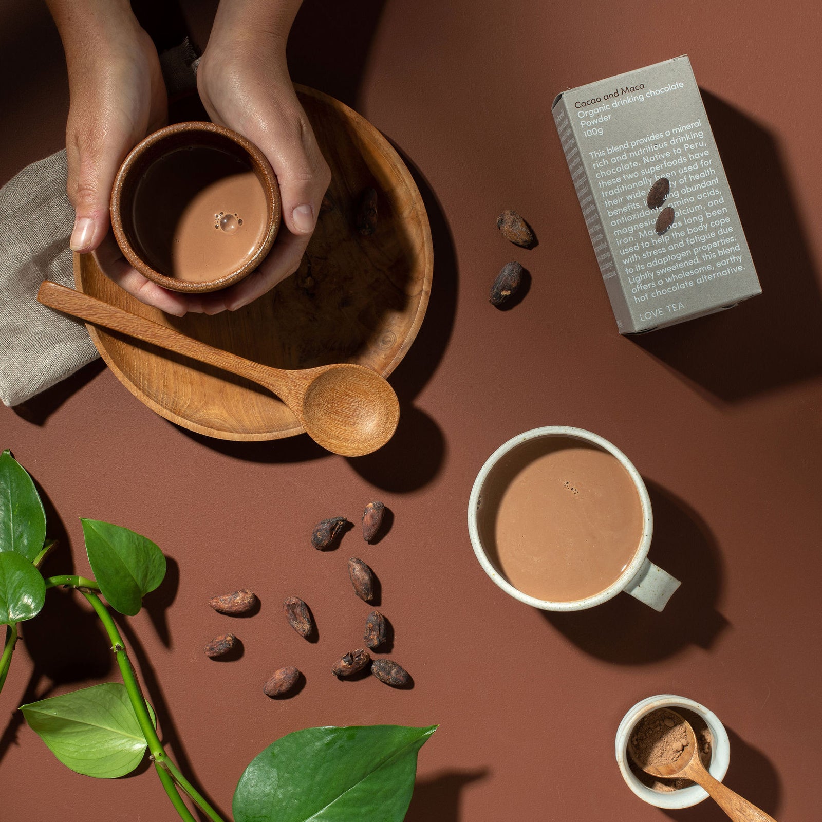 This Cacao and Maca blend provides a nutritious and mineral rich drinking chocolate. Native to Peru, these two superfoods have traditionally been used for their wide variety of health benefits and abundant antioxidants, amino acids, magnesium, calcium, and iron. Maca has long been used for its adaptogen properties, helping the body cope with stress and fatigue. Lightly sweetened with coconut nectar, this blend offers a wholesome and earthy hot chocolate alternative.