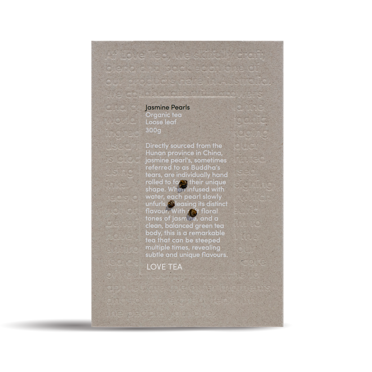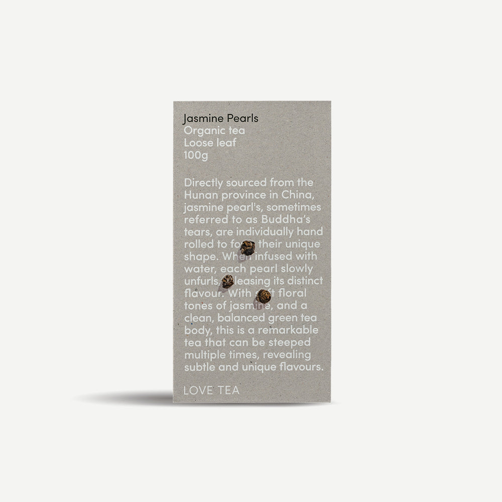 Directly sourced from the Hunan province in China, jasmine pearl’s, sometimes referred to as Buddha’s tears, are individually hand rolled to form their unique shape. When infused with water, each pearl slowly unfurls, releasing its distinct flavour. With soft floral tones of jasmine, and a clean, balanced green tea body, this is a remarkable tea that can be steeped multiple times, revealing subtle and unique flavours.