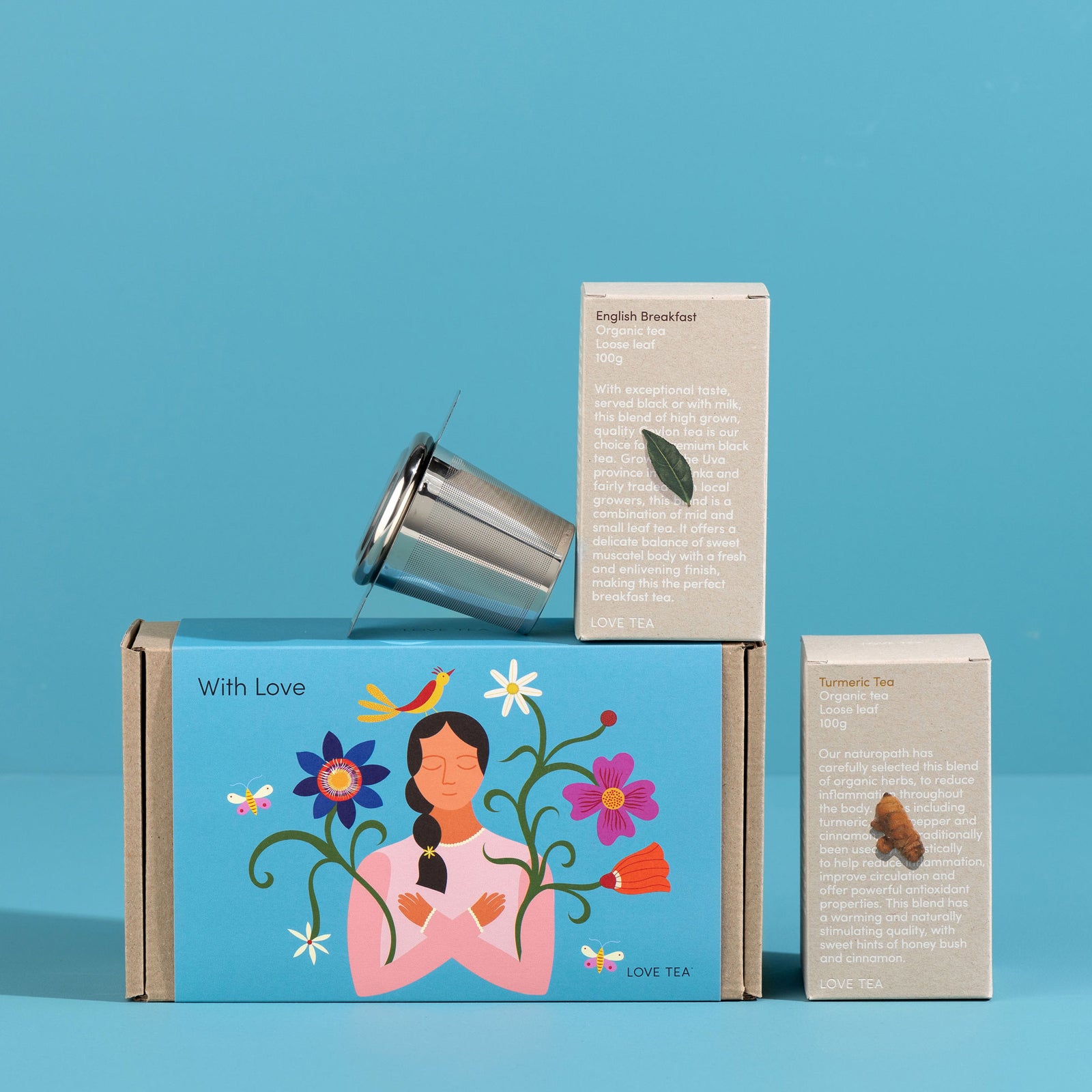 This gift pack contains English Breakfast and Turmeric Tea, two of our most loved blends, paired with a stainless steal infuser. Together they offer a beautiful gift that will enable effortless brewing. From the moment you start preparing your tea, to the final sip, it is our wish that you enjoy every step of the process. It is often in these slower moments that we pause, reflect and reconnect with ourselves and one another. This gift has been thoughtfully packed, with a great deal of care, by us in Australia. We hope our tea inspired you to make time to appreciate the quiet moments, take care of your health and share great tea with people you love.