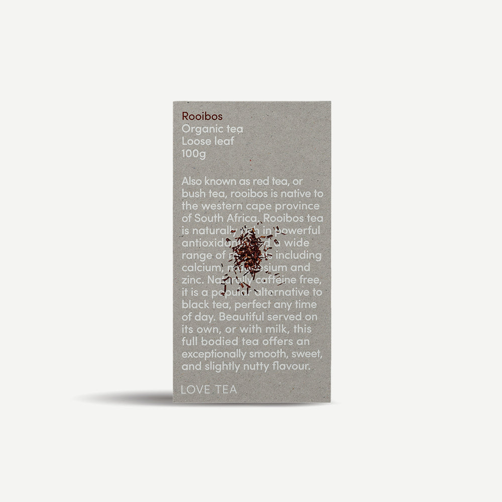 Also known as red tea, or bush tea, rooibos is native to the western cape province of South Africa. Rooibos tea is naturally rich in powerful antioxidants and a wide range of minerals including calcium, magnesium and zinc. Naturally caffeine free, it is a popular alternative to black tea, perfect any time of day. Beautiful served on its own, or with milk, this full bodied tea offers an exceptionally smooth, sweet, and slightly nutty flavour.