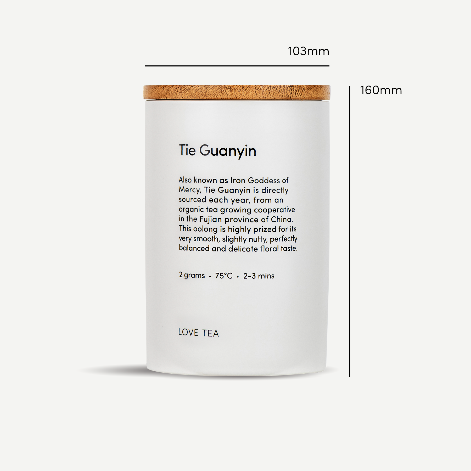 This canister is supplied with 100g of loose leaf Tie Guanyin tea.