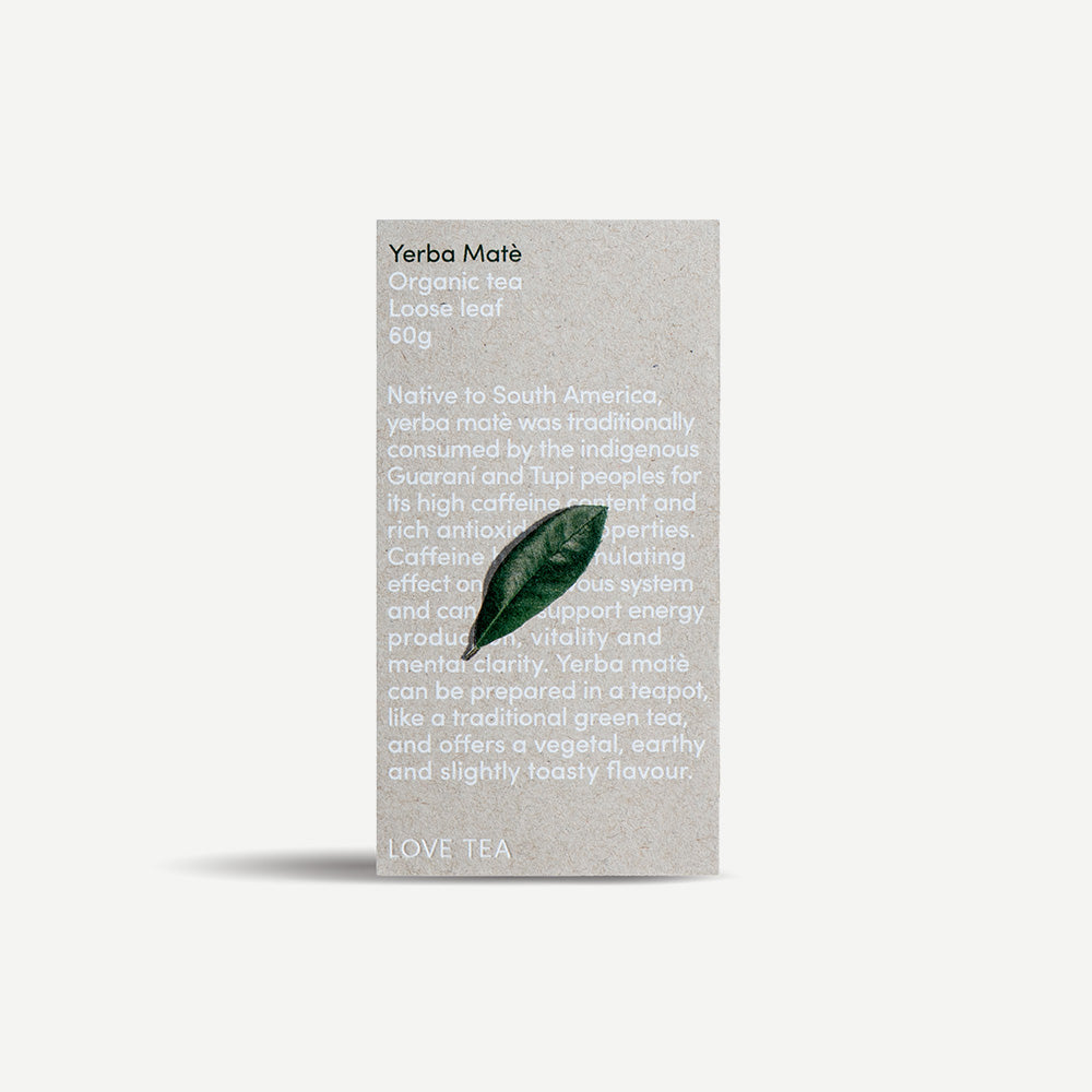 Native to South America, yerba maté was traditionally consumed by the indigenous Guaraní and Tupi peoples for its high caffeine content and rich antioxidant properties. Caffeine has a stimulating effect on the nervous system and can support energy production, vitality and mental clarity. Yerba maté can be prepared in a teapot, like a traditional green tea, and offers a vegetal, earthy and slightly toasty flavour.